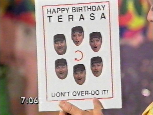 Terasa had her 22nd Birthday on April 9th. Visitors to these web pages were invited to add their messages to a card which we then sent off. This was the result...